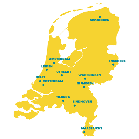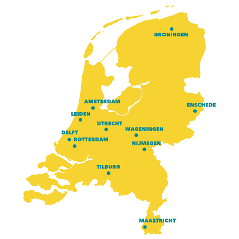 De wetenschapsknooppunten zijn gevestigd in elf Nederlandse universiteiten.